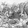 A stone platform drips blood, suspended in blue firmament and refracting light to numb earth--livening dead soil.